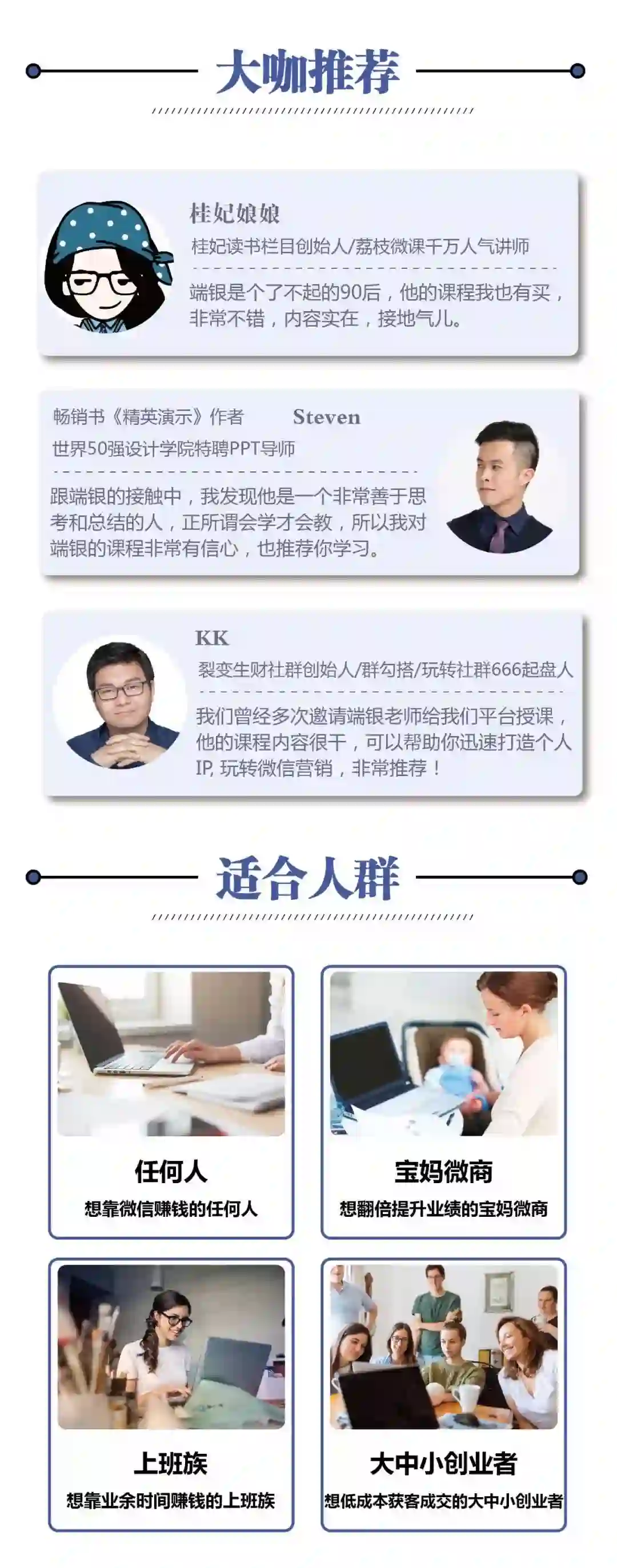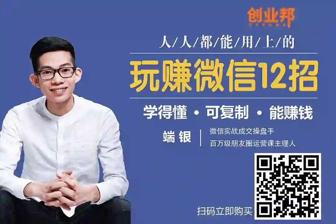 端银的学员便是如此。为了让更多朋友学会朋友圈运营,玩赚微信,并能够从中获益,端银特地带来自己的新课《玩赚微信12招》,他将毫无保留,手把手教你玩赚微信!没钱没人脉也能多赚10万!