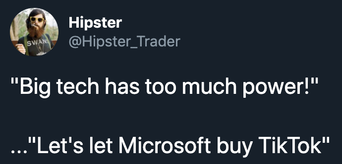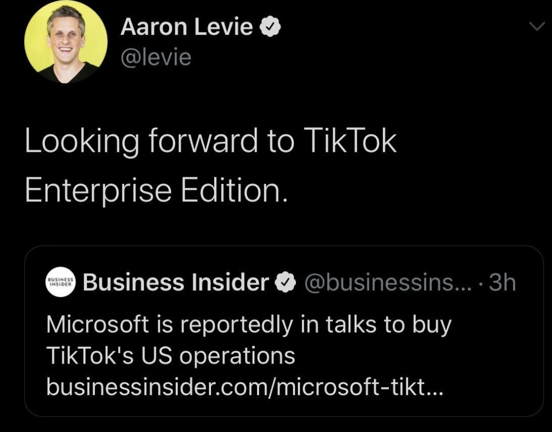 更值得玩味的一点是,就在前几天的反垄断听证会上,Facebook还指责TikTok「偷窃他们的技术」干扰市场。结果今天就传出微软要买下TikTok...两家科技大佬看来要硬刚了?