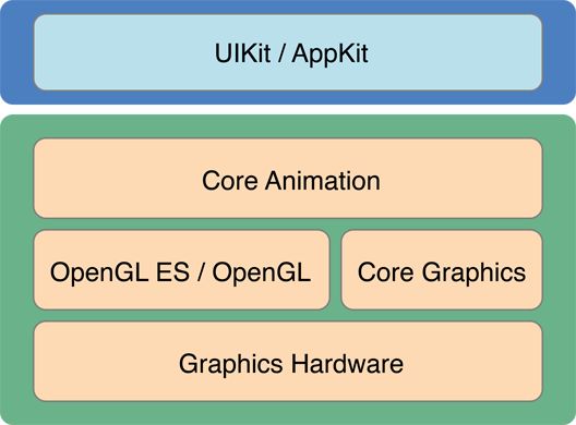 OpenGL和Core Graphics都是绘图专用的API类族,调用图形处理器(GPU)进行图形的绘制和渲染。在架构上是平级的,相比UIkit更接近底层。