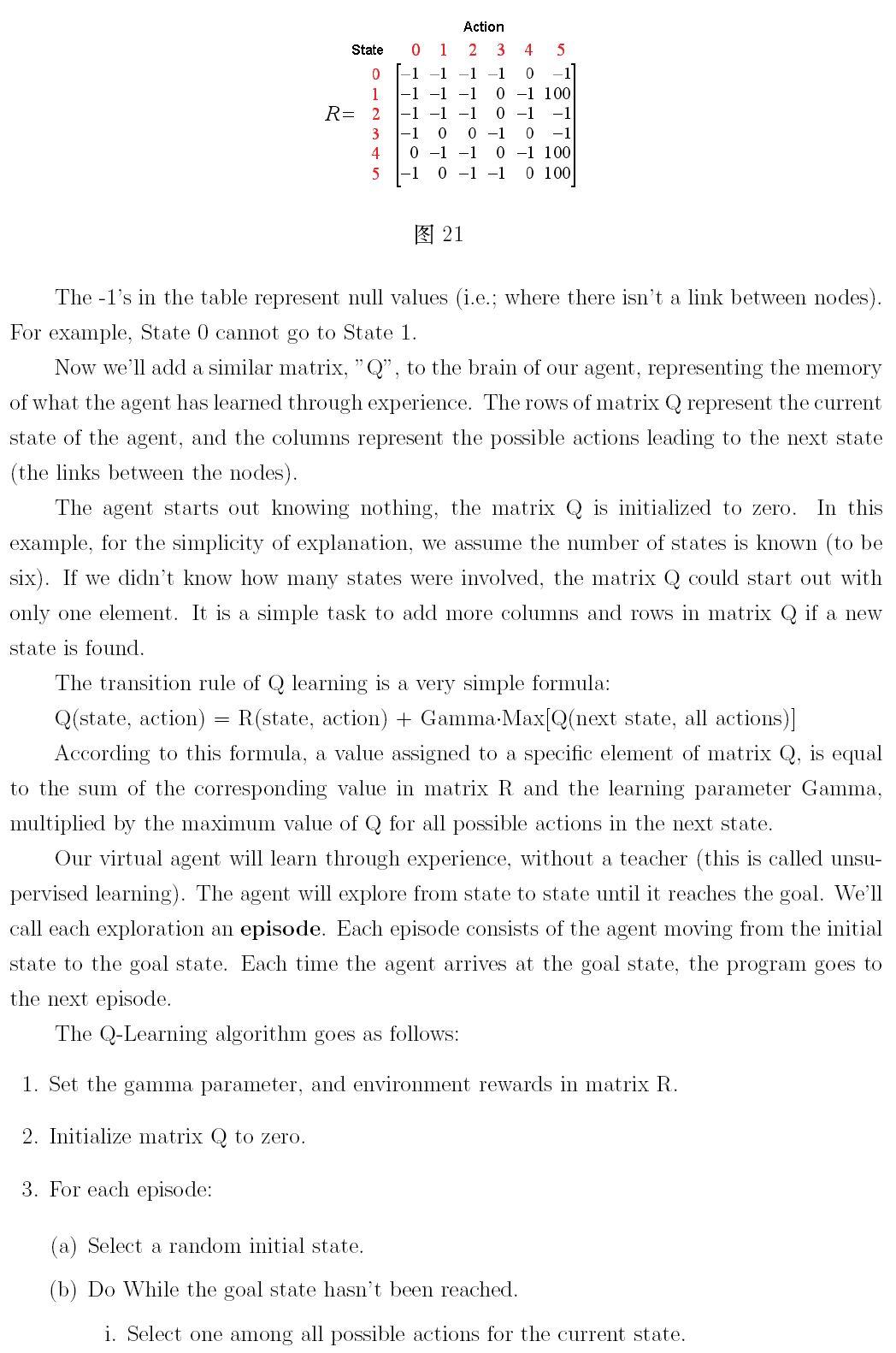 本文是对 http://mnemstudio.org/path-finding-q-learning-tutorial.htm 的翻译,共分两部分,第一部分为中文翻译,第二部分为英文原文。翻译时为方便读者理解,有些地方采用了意译的方式,此外,原文中有几处笔误,在翻译时已进行了更正。这篇教程通俗易懂,是一份很不错的学习理解 Q-learning 算法工作原理的材料。