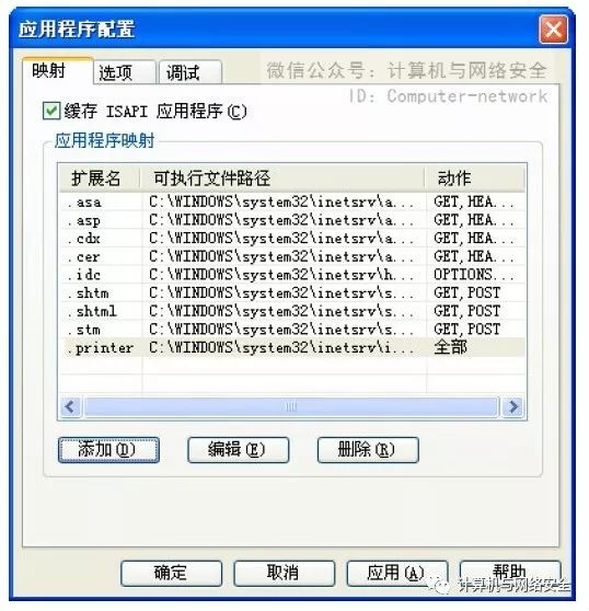 由于此漏洞是.printer后缀的脚本,会输送给msw3prt.dll的存在溢出漏洞文件。要避免这个危害,可以删除.printer映射。