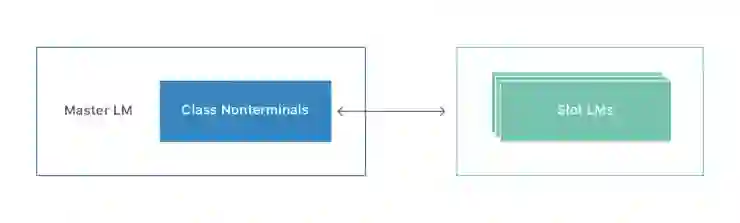 在我们的类语言模型框架中,主语言模型如其它的类语言模型一样被训练,训练使用的文本来自于所有模型支持的领域。为了提升对非终结符标签的支持,最初我们依赖于使用通过基于特定地理位置的模版认为创建的训练文本,例如「指向\CS-POI」,其中「\CS-POI」为类标签。