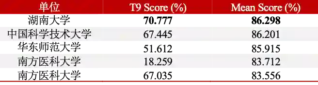 同赛道排名前五队伍的T9 Score及Mean Score