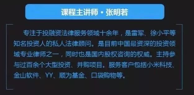 因此,张明若律师决定为所有为股权而困惑的人打造一个有深度的股权系列课程。