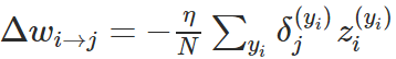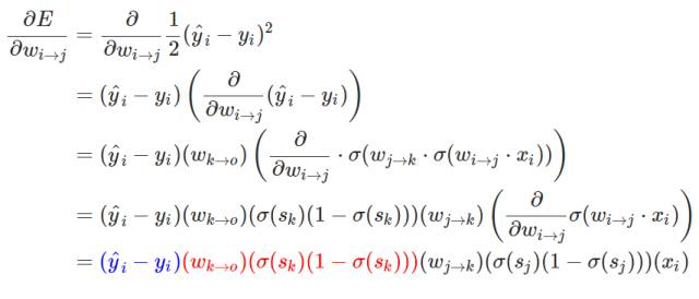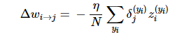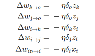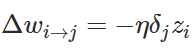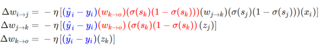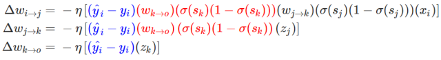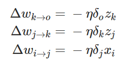 在这一个神经网络中,准确的权重更新模式是以下方程式: