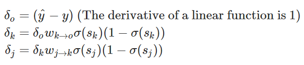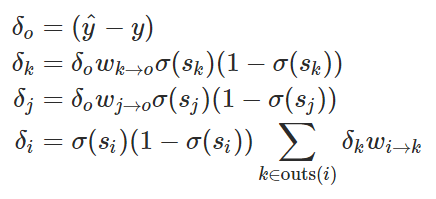 我们能使用 δ_i 的定义导出整个神经网络的所有误差信号: