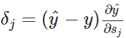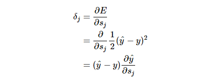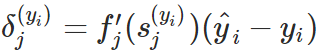 2. 对于所有的神经元 j 和每一个训练样本 y_i 计算误差信号,如果 j 是输出神经元,那么有: