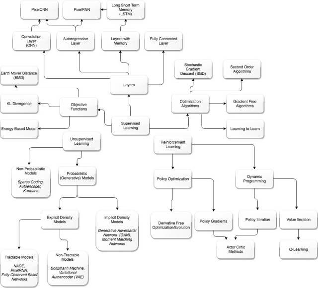 其他途径就是「想象力」(imagination)或「做梦」(dreaming),不用立刻把预测与事实对比然后更新参数。今天最接近的体现就是生成对抗网络(GAN)。GAN 包括两个网络:生成器和鉴别器。你可以把鉴别器当作使用目标函数的神经网络,即它可以用现实验证内部生成器网络。生成器自动化创造近似现实。GAN 网络使用反向传播,执行无监督学习。因此,无监督学习可能不需要目标函数,但它或许仍然需要反向传播。