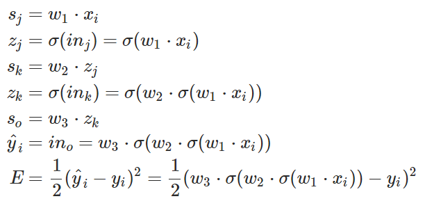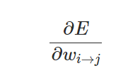 E 就相当于系统做出的判断与正确标注之间的损失。E 对权重 w 求偏导并最小化,即在损失函数 E 最小的情况下求得权重 w,上述方程式表明需要求得 k 神经元到 o 神经元之间最优权重 w。