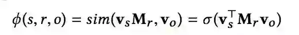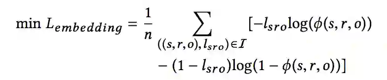 lsro表示三元组的标记,表示三元组的评分函数,vs表示图谱三元组中主语(subject)的映射,Mr表示图谱中两个实体间关系的映射,vo表示图谱三元组中宾语(object)的映射。