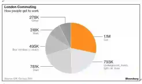 伦敦的通勤景观:人们选择何种交通方式上班 数据来源:2011年英国人口普查数据