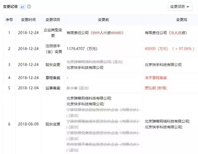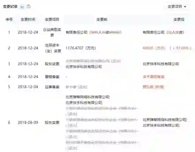 5. A站工商资料变更:成快手全资子公司,注册资本升至4亿