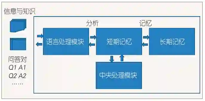 未来人工智能技术不断发展,预计将会出现智能性的问答系统,系统包括语言处理模块、短期记忆、长期记忆、中央处理模块(如图2所示)。有大量的结构化的、非结构化的信息和知识作为输入,也有大量的问答语对作为训练数据。系统能够自动获取信息与知识,掌握语言理解与生成能力,将信息和知识处理存储到长期记忆,理解用户用自然语言提的问题,利用记忆的信息与知识给出正确的答案。