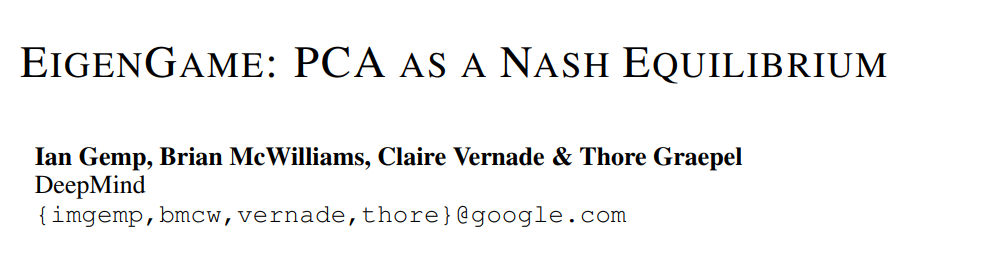 论文 3:EigenGame: PCA as a Nash Equilibrium