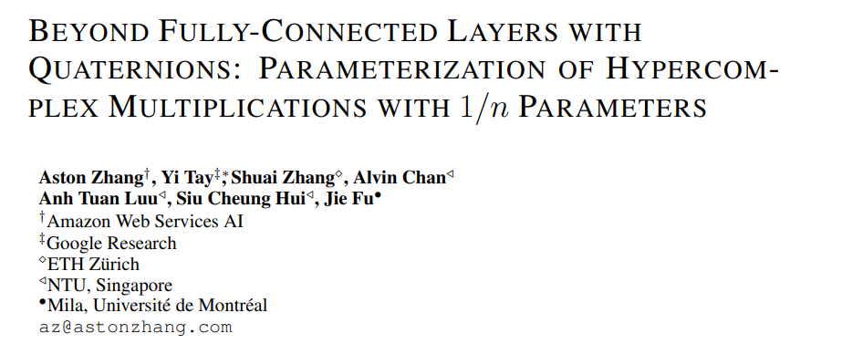 论文 1:Beyond Fully-Connected Layers with Quaternions: Parameterization of Hypercomplex Multiplications with 1/n Parameters