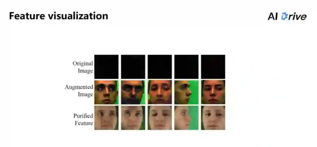 第三行的 Purified Feature 就是特征纯化的结果,但是重建出来的图片能够明显看出,对于每个人来说,其实提取到特征中间,每个人看起来都已经是学习到类似于平均脸的模型。