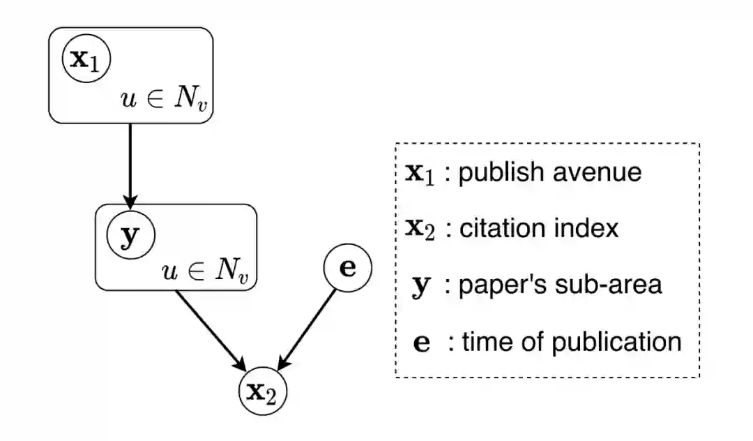 有关的随机变量。上面提到的引用网络的例子正是这个假设场景的具体体现。此外,我们考虑用于预测的图神经网络模型 ,其中