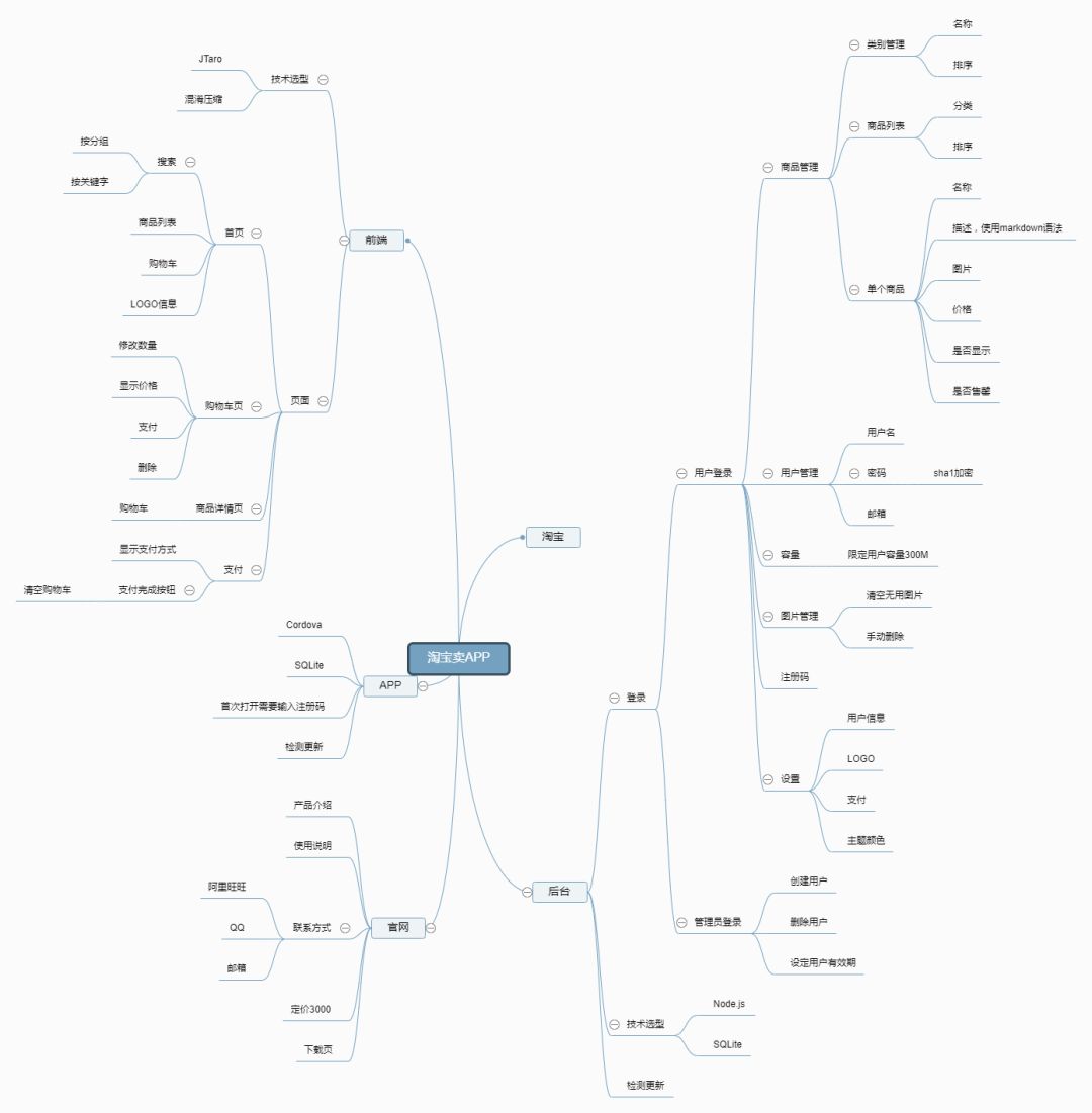 我创业初期构思要做一个APP在淘宝上卖的百度脑图
