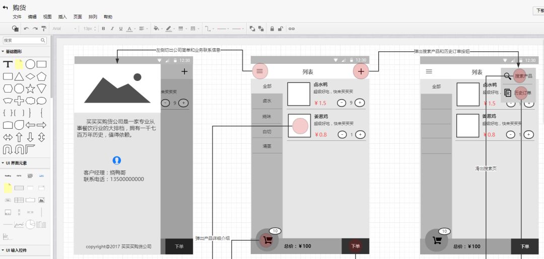 我的第一个项目,就是上面两张图设计的项目,做了3个月,果断放弃了,因为市面上这类产品已经很多很成熟,饿了么、美团,是不是有点像?这个项目最失败的地方在于我在原型设计上花费太多时间,以及怎样销售、怎样推广到市场,有什么优势可以让商户用我的产品这些问题都没有考虑。
