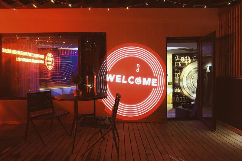 顶楼露台的露天酒吧也摇身一变成为「睡吧」,常规的椅子变成了「床」,契合了「睡音乐」的主题。更引发强烈关注的是古典、爵士、民谣和 EDM 四个主题房间,满足不同人群的音乐喜好。每个房间中还配有主题歌单和蓝牙音箱,让住客完全沉浸在音乐的世界里。