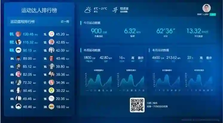 如果你在智能步道跑步,到终点处便能看到大屏幕里的运动排行榜,热量消耗、里程、时长、平均速度等数据悉数记录在这。相较佩戴智能手环,智能步道把“科技健身”从资金、操作两方面降低门槛,它的新鲜感或将增添海淀公园的吸引力。