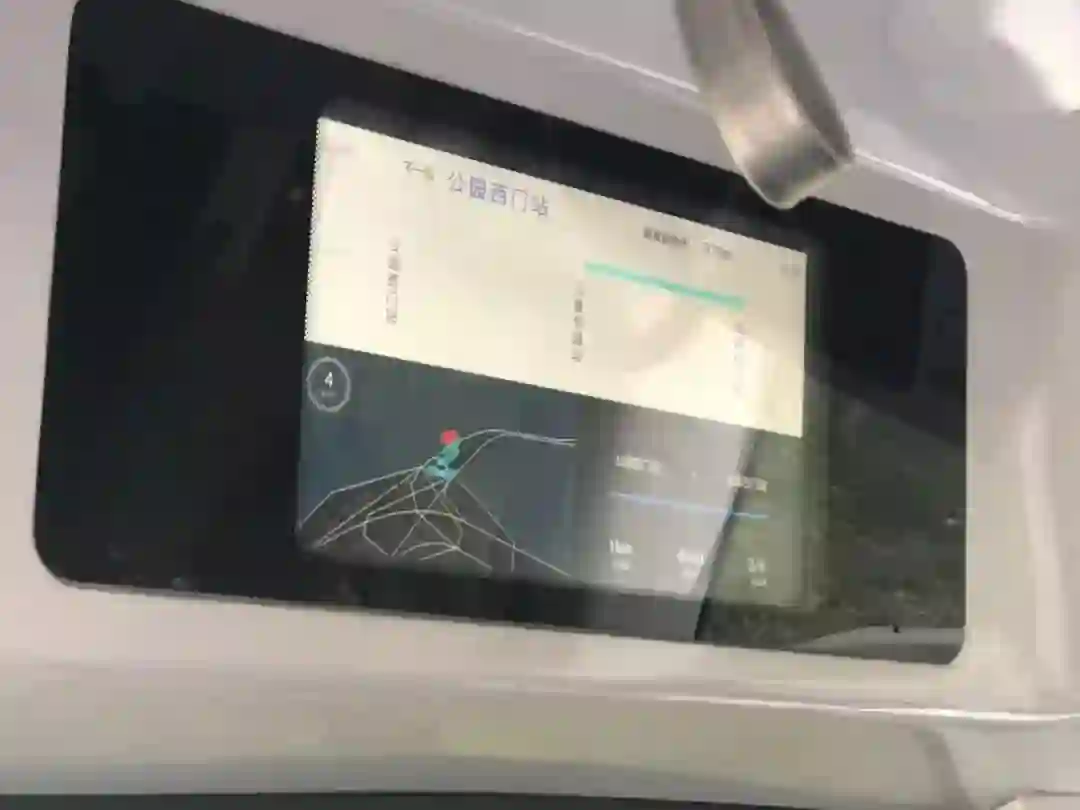 观望车内四周,上下都有屏幕,前一屏幕显示到站情况和车“检测”到的路况信息,另一个屏幕则由安全员“把控”,用来控制车,以备不时之需。安全员一旁的紧急制动的红色按钮,是保障行车安全又一手段。▼
