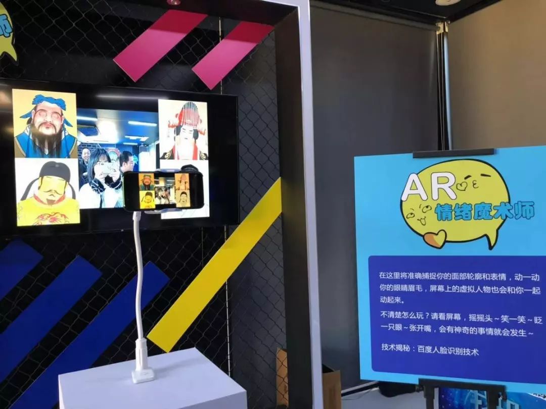 模仿你面部表情的“情绪魔术师”,就类似iPhone上的emoji动态表情,屏幕的虚拟人物会在你表情的控制下,做相应的眨眼、摇头、大笑等动作。▼