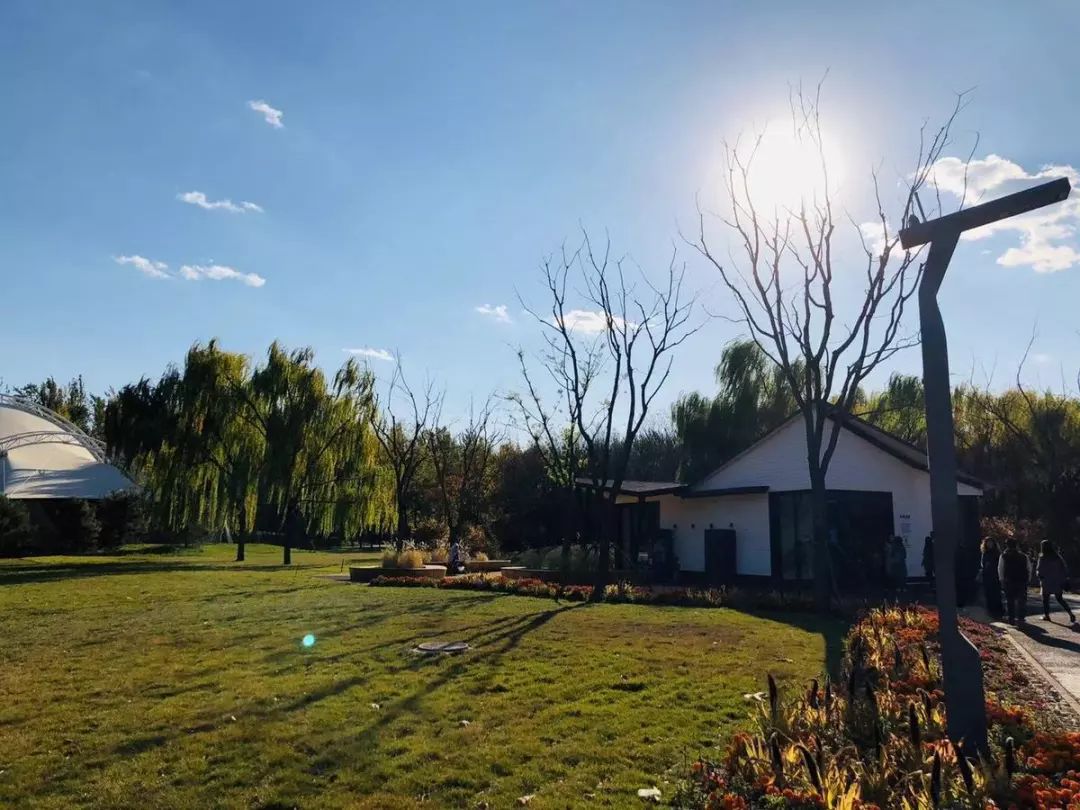 由海淀公园东门进入“百度AI公园”,从门口看,这通向“未来公园”的大门与平日没有不同。▼