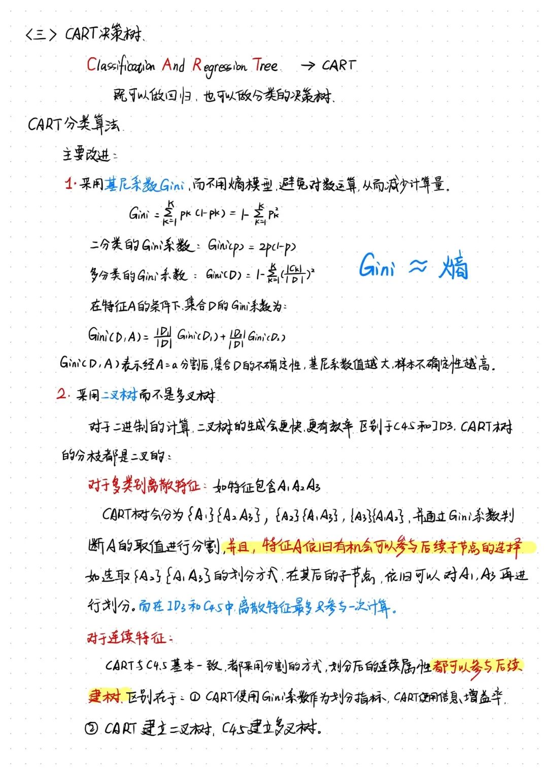 这份笔记会对ID3、C4.5、CART树进行介绍,希望对你有所帮助,如有疏漏,回复提出,感谢纠正~