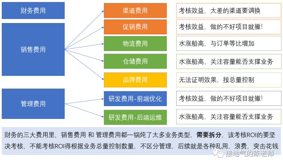 如果不按对收入作用解构,依然按财务分类一大包统计进“销售费用”“管理费用”科目,是看不出细节问题的。