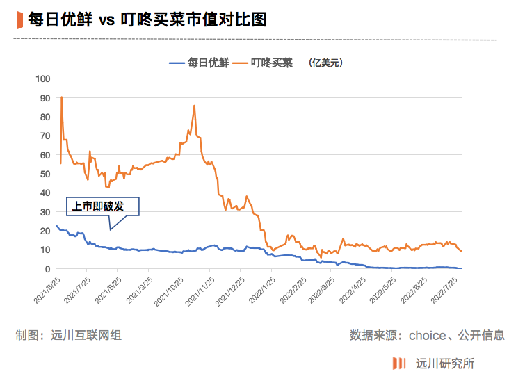 在没有高利润的赛道上,高增长性是唯一的财富密码。每日优鲜逐渐失掉自己龙头地位时,资本市场的“落井下石”也就不稀奇。