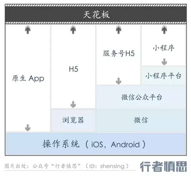 原生 App 是寄生在 iOS 和安卓里面的,如果要开发一个原生的 App,你要同时去考虑到不同的操作系统。H5 可以不用顾虑平台,只要在浏览器里面就好了,但要考虑浏览器的适配问题。微信也是一个浏览器,而且在这个层面做了很多创新,最近的浮窗也算是个小创新。