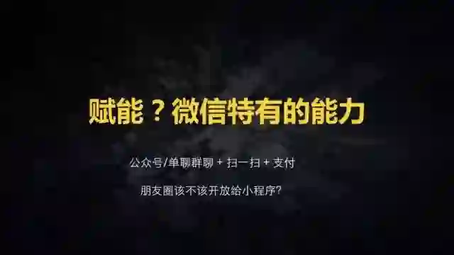 说到这里有一个问题,我不知道大家有没有想过:小程序不允许分享到朋友圈,既然要赋能,为什么不把朋友圈赋给我们呢?