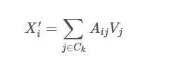 在给定的聚类簇 C_i 中,他们使用了一种标准的加权求和方法,计算了一组新的上下文嵌入,其中每个注意力值 A_i 是使用标准的点乘自注意力计算而来的。
