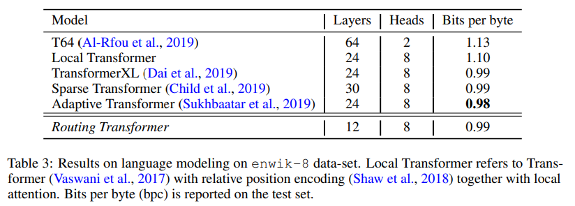 在 Enwiki-8 数据集上,路由Transformer 的性能也非常出色(尽管其性能稍微落后于自适应跨度 Transformer)。
