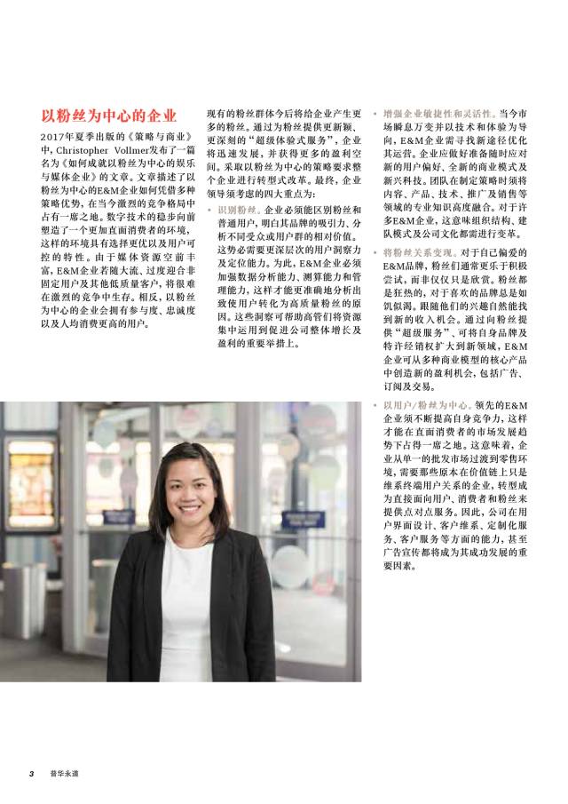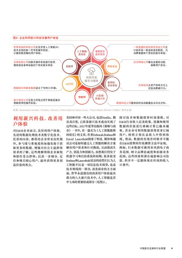 随着娱乐与媒体(E&M)行业的发展与转变,尖端科技的融合使E&M的边界线日渐模糊,渗透到各个方面影响着人们的生活,不断催生新的商业模式,开辟新的市场。