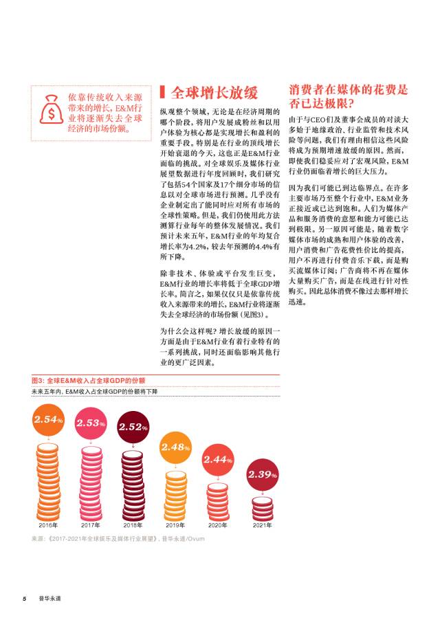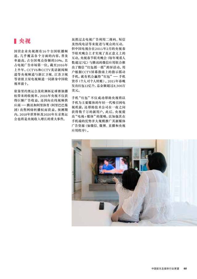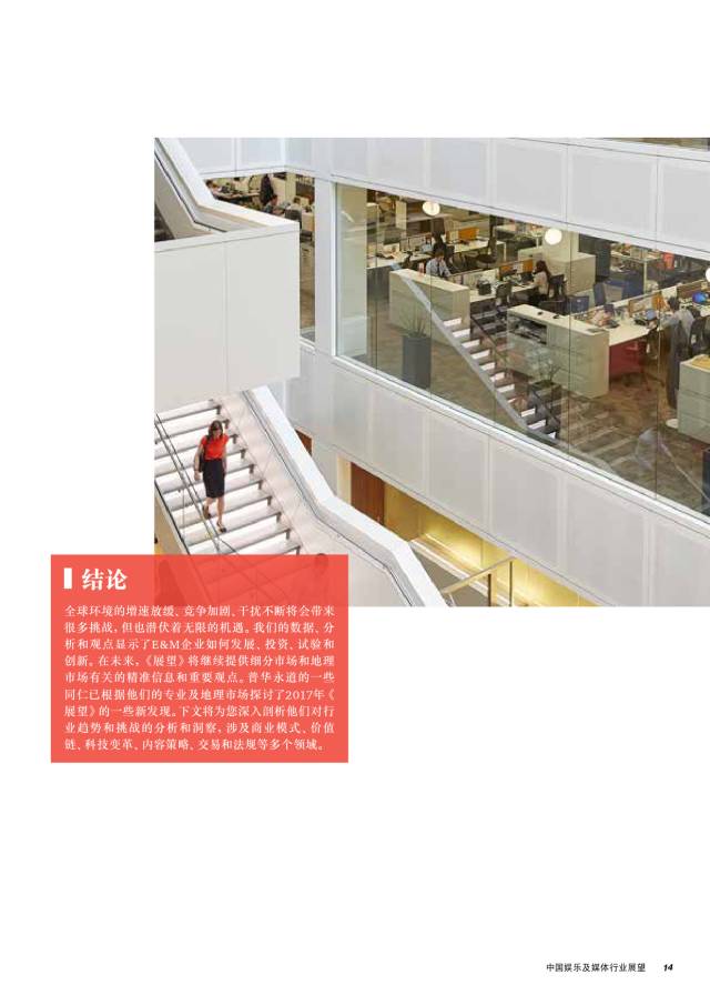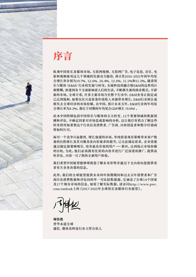 此本中国特辑包括中国娱乐与媒体的五大转变、12个重要领域的数据预测和评论、不确定因素对市场造成影响的分析,这让我们有机会了解这些转变将何如重塑这个行业以及消费者、广告商、内容创造者和数字经销商将如何应对。