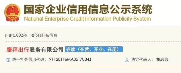 据北京商报记者查阅国家企业信用信息公示系统发现,摩拜在今年6月下旬成立了摩拜出行服务有限公司,注册资本5000万元,经营范围包括从事与出行相关的技术开发、技术推广、技术转让、技术咨询、技术服务等。