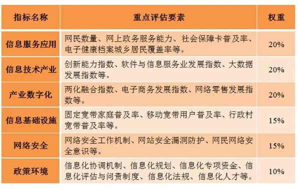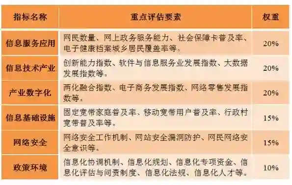 为更好地评估各地区落实《国家信息化发展战略纲要》和《“十三五”国家信息化规划》的进展情况,国家互联网信息办公室组织有关单位,结合国家统计局、工业和信息化部、CNNIC等部门和机构的统计数据和指数,设计了我国信息化发展评价指标体系,主要包括信息服务应用、信息技术产业、产业数字化、信息基础设施、网络安全、政策环境等6个方面的指标,形成信息化发展评价指数。指数数值越高,表明地区信息化发展成效越好。