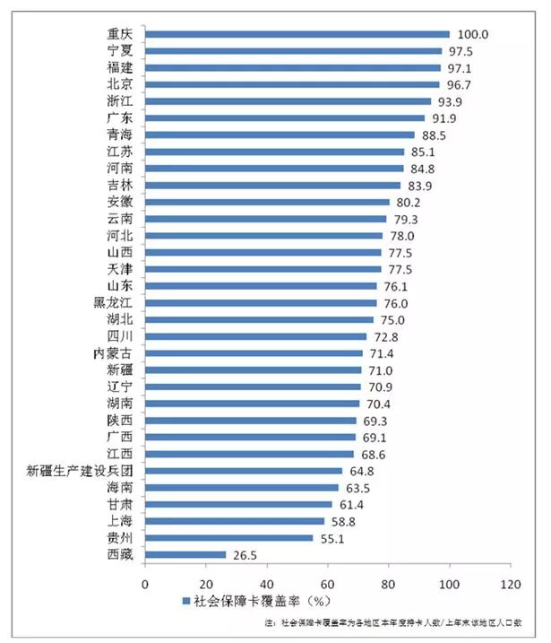 图5 2017年各省社会保障卡覆盖情况