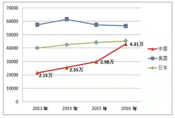 图1 主要国家信息技术领域国际专利申请数比较