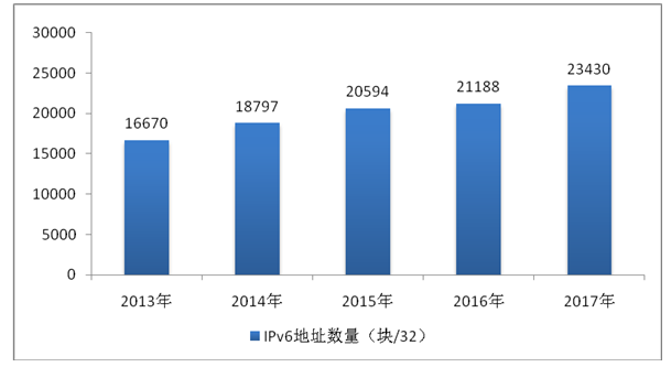 图8 2013-2017年我国IPv6地址数量变化