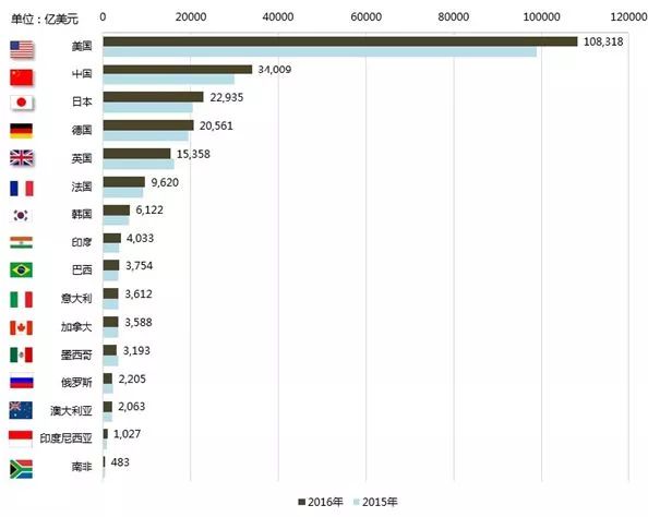 图4 2015-2016年G20数字经济规模