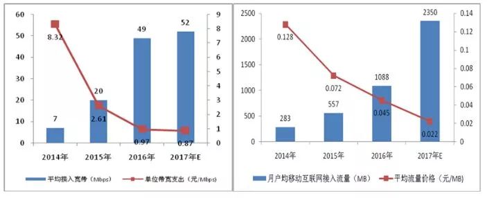 图2 2014-2017年我国固定宽带和移动数据提速降费情况