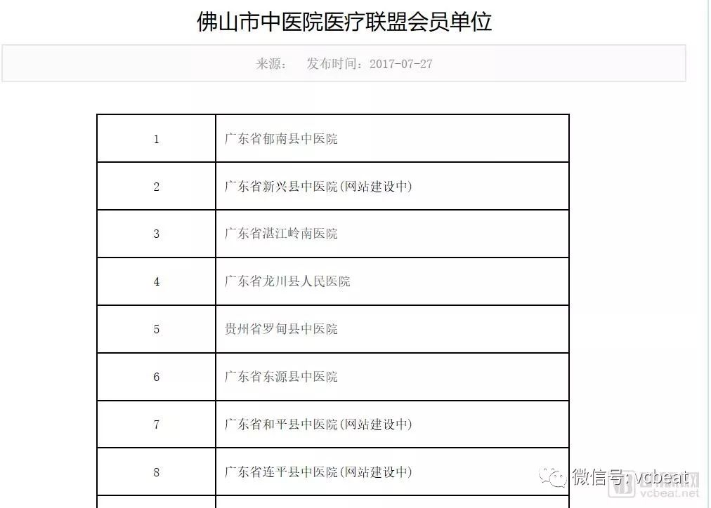 为了推进分级诊疗制度的建设,根据《佛山市推进医疗联合体建设指导意见》指导,去年,佛中医院与高明区中医院建立的“托管”关系。目前,佛山市中医院医联体建设已拓展至三水、禅城、高明,还打造了胸痛中心专科联盟、覆盖11省41家医院的中医院医疗联盟。这里,截取了佛中医官网的医疗联盟部分单位: