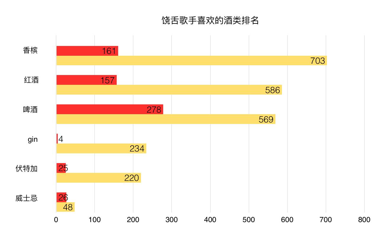 然后我又统计了一下 rapper 们都喝什么 ⇣