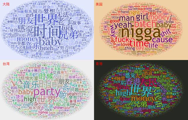 看起来 rapper 的生活差不多,无论大陆还是台湾,都喜欢喊 “baby”,身边都有一群“兄弟”和“朋友”,有“梦想”,平时都在唱 “hip hop” ,有“烦恼”了就骂骂街。