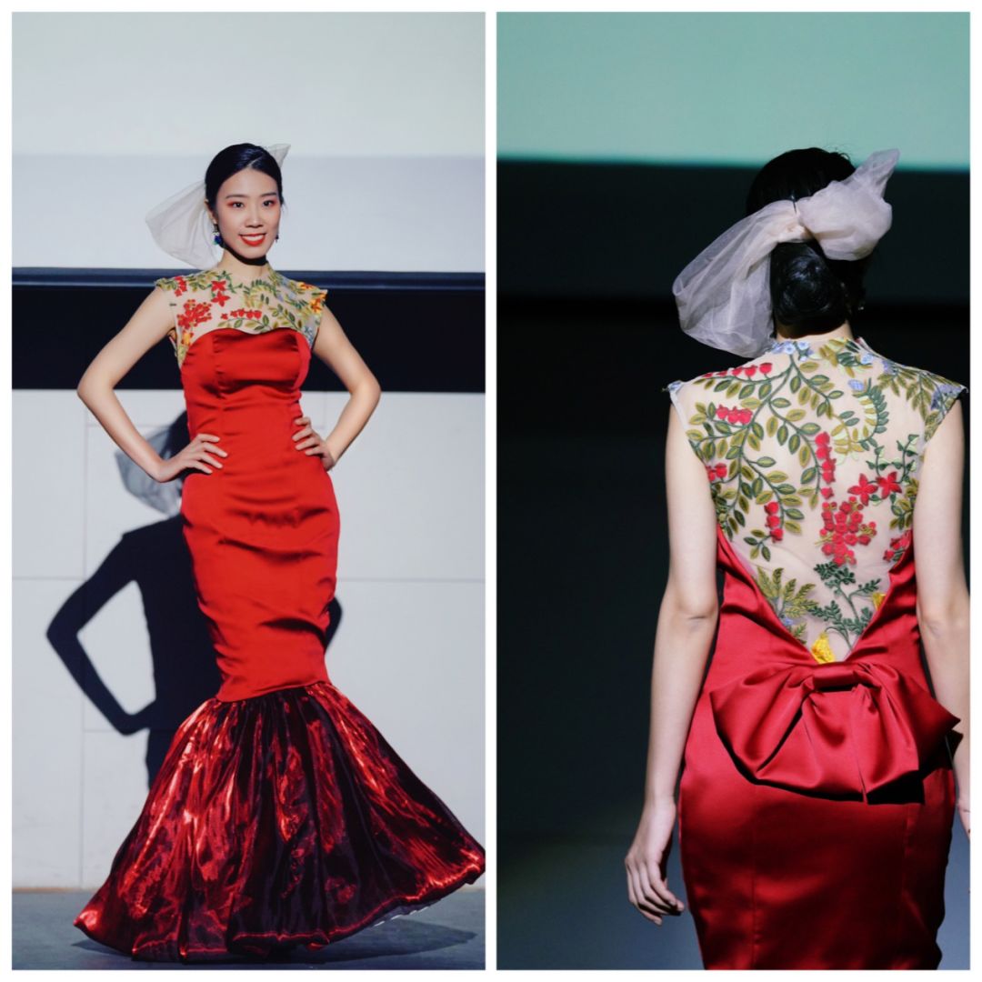 越颖身穿自己设计制作的毕业礼服参加北京服装学院结业秀