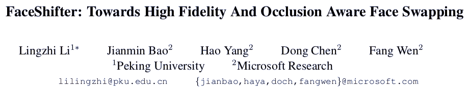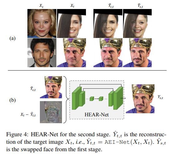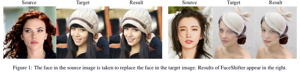 最终的换脸图像是通过两段式框架 FaceShifter 生成的。