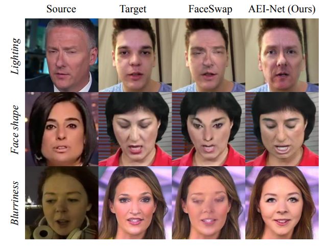 尽管 AEINet 第一阶段的换脸结果